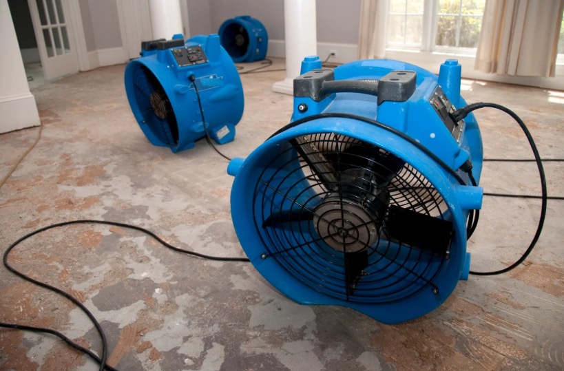 • Commercial dehumidifiers that lower indoor humidity, prevent secondary issues, and accelerate drying far better than household models